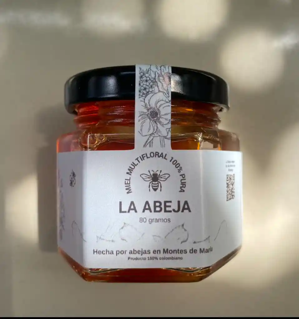 Miel orgánica en estado puro, color ambar claro, producida por abejas Apis Mellifera. Cultivada por apicultores de El Carmen de Bolívar, en la subregión de los Montes de María.
