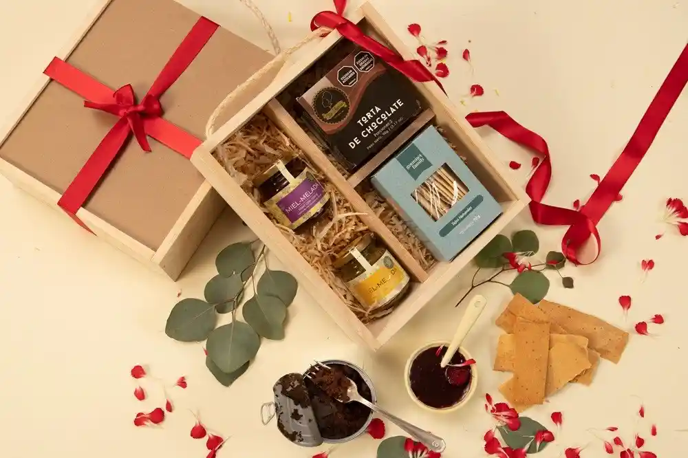 Este regalo contiene tejas naturales (galletas para untar – 90g aprox) acompañadas de dulce de uchuva (130 ml) y dulce de mora con agraz (130 ml). Luego disfruta una rica torta de chocolate (150g). Regalo para papá - Anchetas padre - Sorpresa padre - regalo especial