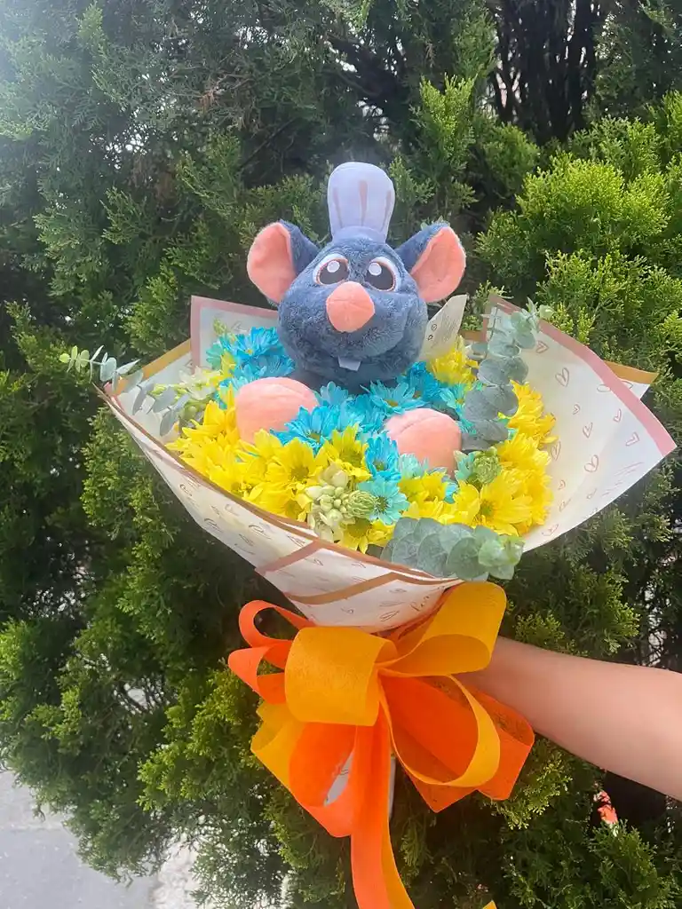 bouquet con margaritas y un peluche que hará enamorar a tu ser amado