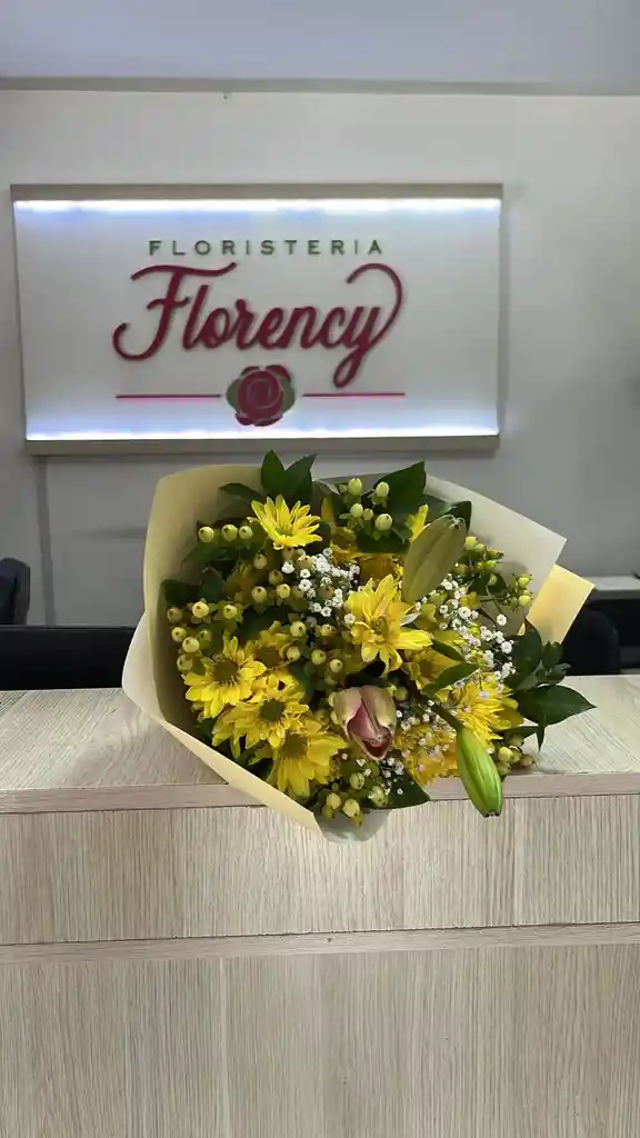 MINI BOUQUET MARGARITAS AMARILLAS nota: el color de papel decorativo puede variar. el color de las flores puede variar