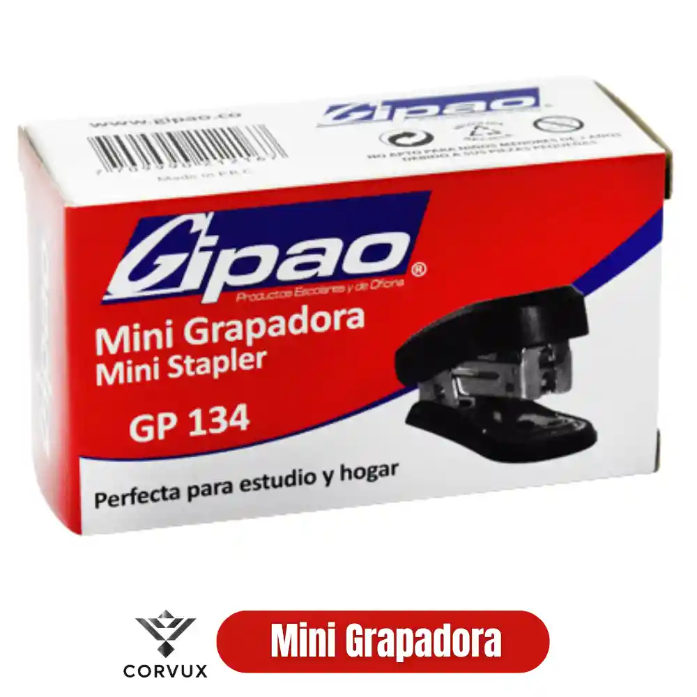 Mini grapadora GIPAO GP-134, compacta y funcional para estudio, oficina y hogar. Ideal para organizar documentos pequeños con facilidad. Diseño liviano, manejo cómodo y tamaño portátil. Compatible con grapas estándar. Práctica, resistente y fácil de usar. Perfecta para uso diario sin ocupar espacio.