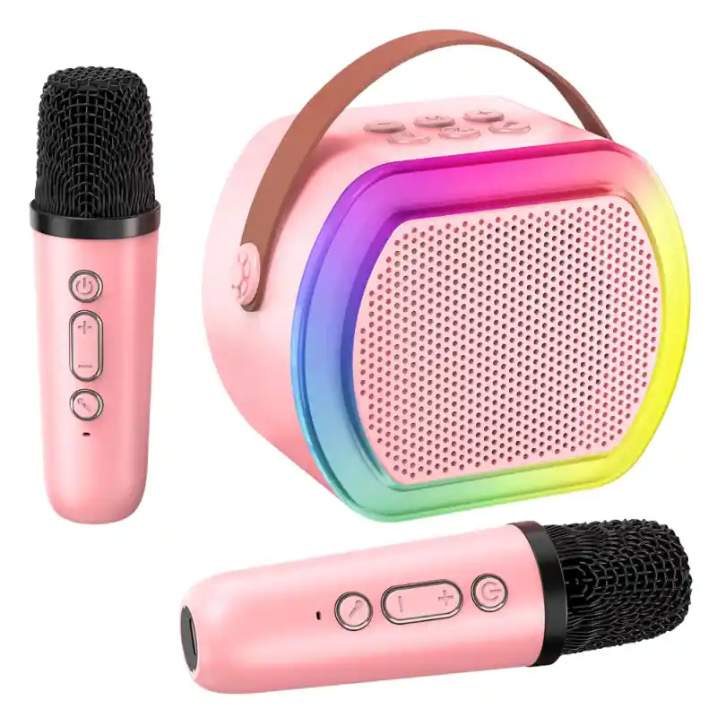 Mini Karaoke Inalámbrico Bluetooth con Micrófono – Portátil para Fiesta y Hogar Disfruta de tus canciones favoritas con este sistema de karaoke portátil con micrófono inalámbrico, ideal para fiestas, reuniones familiares, salidas o momentos de entretenimiento en casa. Compacto, fácil de usar y con funciones completas para cantar y ambientar cualquier espacio. Características principales Conectividad Bluetooth 5.4, emparejamiento rápido y estable hasta 10 m de distancia. Sonido Hi-Fi con graves balanceados y voz clara gracias a chip de audio optimizado. Micrófono inalámbrico incluido (2) — compatibles con la unidad principal. Iluminación LED multicolor sincronizada con la música, creando ambiente de fiesta o karaoke. Batería recargable integrada: hasta 8 horas de uso continuo tras carga completa (≈ 2 horas). Diseño compacto y portátil — fácil de transportar, ideal para fiestas, viajes o uso en interiores. Puerto de salida auxiliar de 3.5 mm para conectar audífonos y escuchar en privado. Uso recomendado Perfecto para celebraciones de cumpleaños, reuniones familiares, fiestas infantiles o juveniles, karaoke casero, clases de canto, viajes, salidas al aire libre, presentaciones informales o simplemente disfrutar música con amigos.