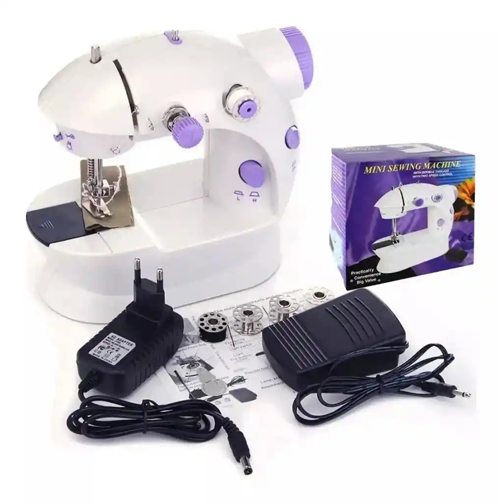 Voltaje: 110V Electrónica. Tipos de puntada: recta. Tiene enhebrador manual. Iluminación en el área de costura. Accesorios incluidos: 4xcarretes. Ideal para proyectos de corte y confección.