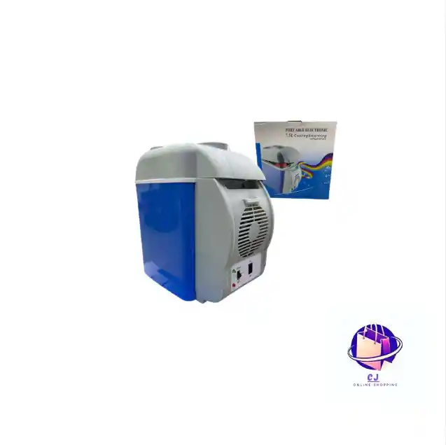 Dispositivo compacto de refrigeración diseñado para mantener bebidas y alimentos fríos o calientes dentro del vehículo, funcionando mediante conexión eléctrica del carro.