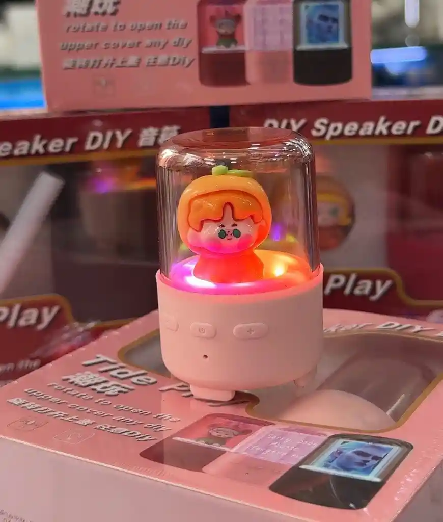 Mini parlante altavoz bluetooth con luz led y figura infantil colores: rosado, rojo y negro