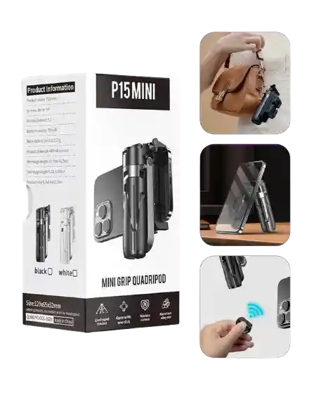 Tamaño de 11,7 cm (plegado) a 41 cm (extendido) - Material: Plástico ABS de alta durabilidad- Control remoto: Inalámbrico (ideal para selfies y grabaciones a distancia)-Funciones: Palo para selfies, trípode de escritorio, agarre de teléfon- Portabilidad: Diseño compacto, cabe en bolsos y bolsillos.