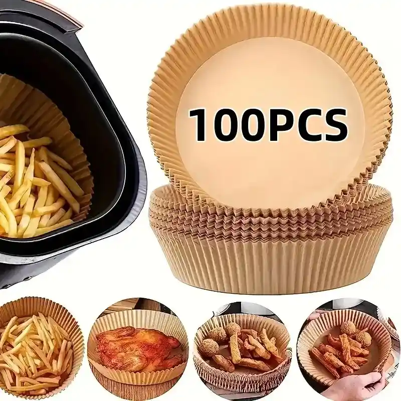 MOLDE DE PAPEL PARA FREIDORA DE AIRE X 100UND Este paquete contiene 100 papeles para airfryer cuadrados de 16 cm para freidoras desde 2.6 a 4.7 litros