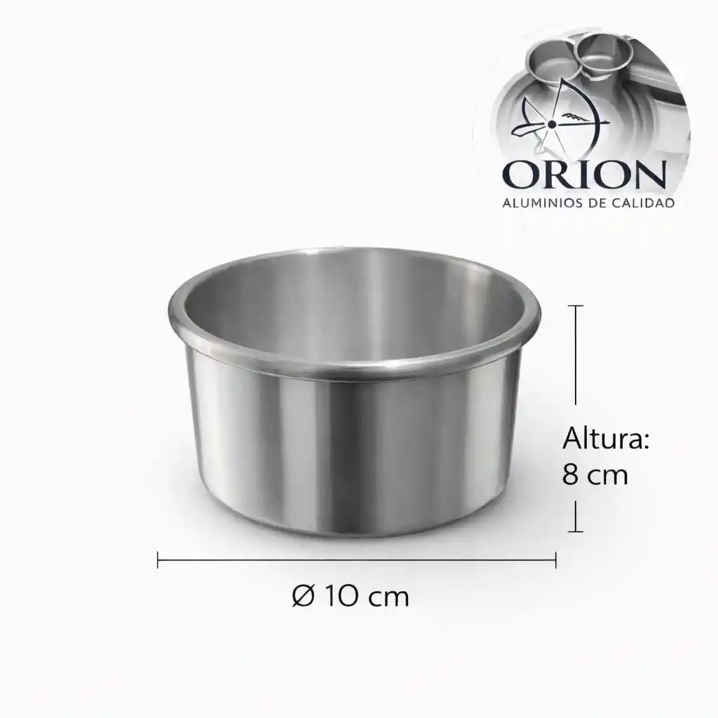 Molde redondo en aluminio importado, calibre 1mm, 10cms diametro, 8cms altura