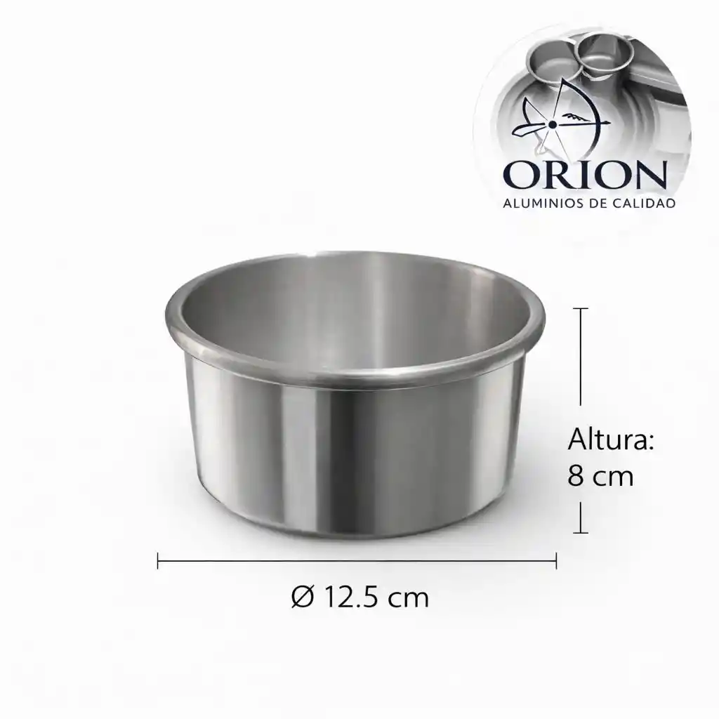 Molde redondo en aluminio importado, calibre 1mm, 12.5cms diametro, 8cms altura