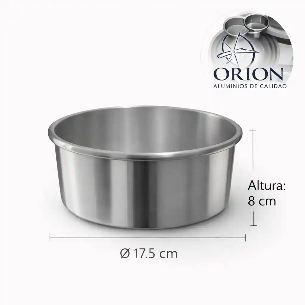 Molde redondo en aluminio importado, calibre 1mm, 17.5cms diametro, 8cms altura