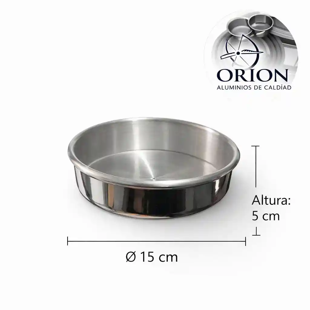 Molde redondo en aluminio importado, calibre 1mm, 15cms diametro, 5cms altura