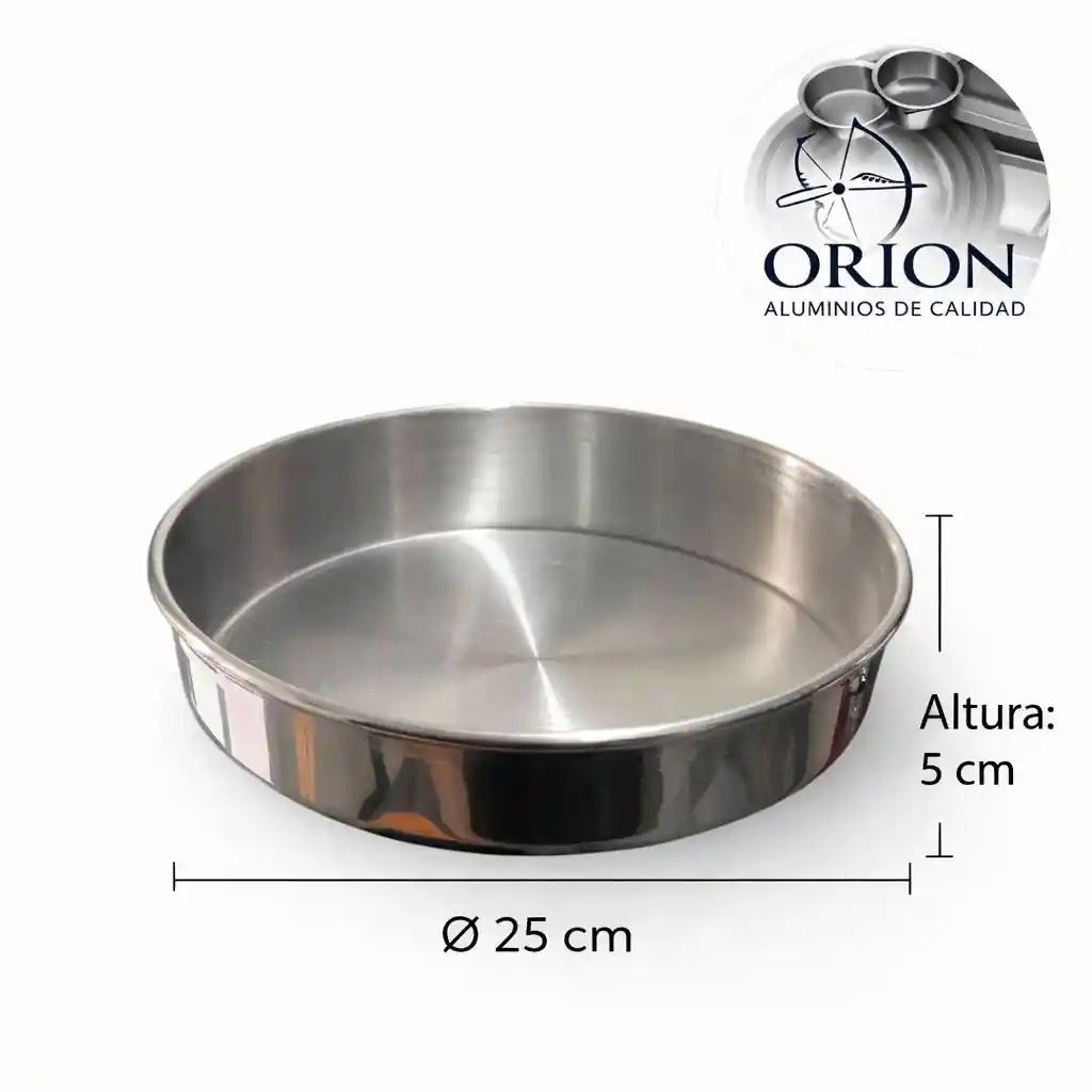 Molde redondo en aluminio importado, calibre 1mm, 25cms diametro, 5cms altura