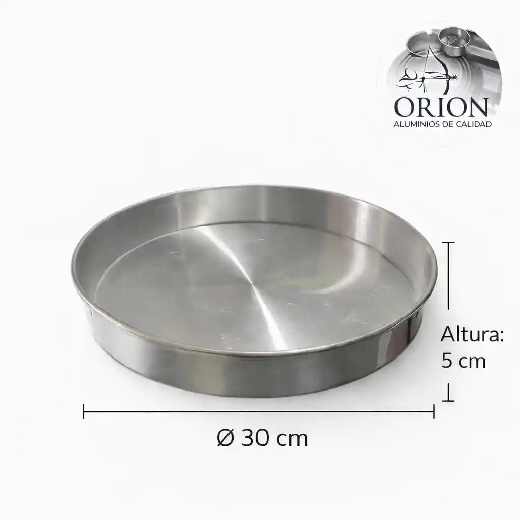 Molde redondo en aluminio importado, calibre 1mm, 30cms diametro, 5cms altura