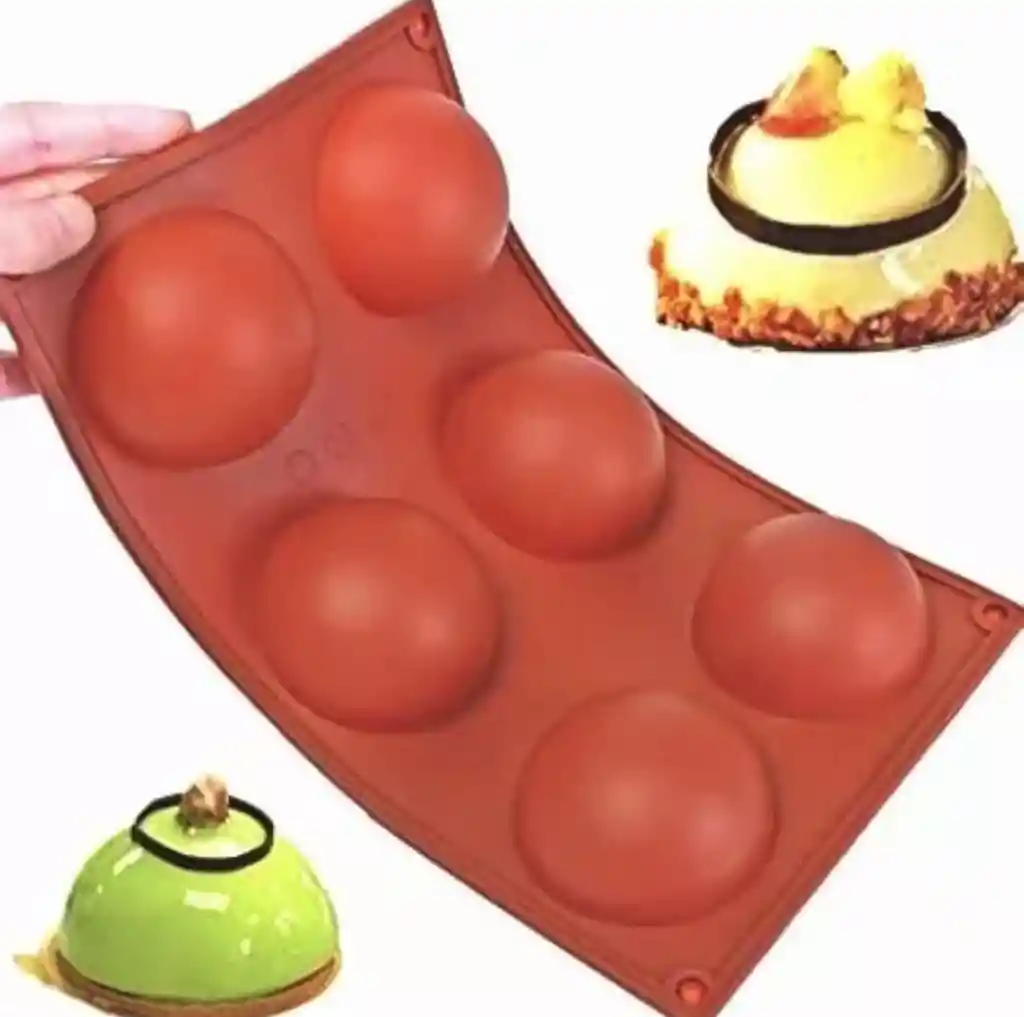Molde silicona flexible x 6 cavidades. Horneable. Ideal para trabajo con chocolate. Medida de cada esfera 6.7cms de diámetro X 3.5 cms de profundidad. Pasteleria y Reposteria.
