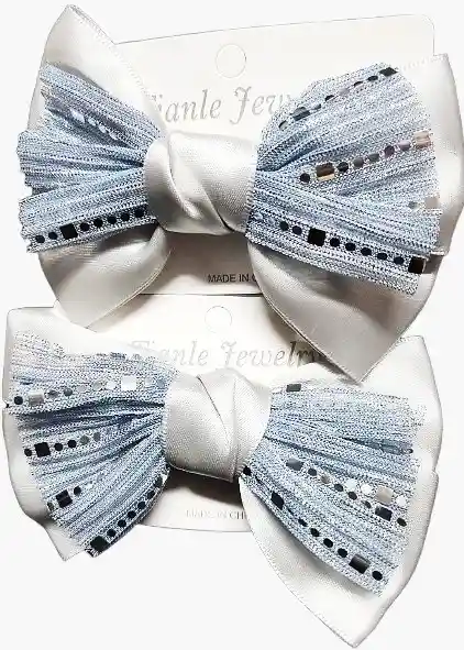 moñas decorativas estilo corbatin, azul y gris.
