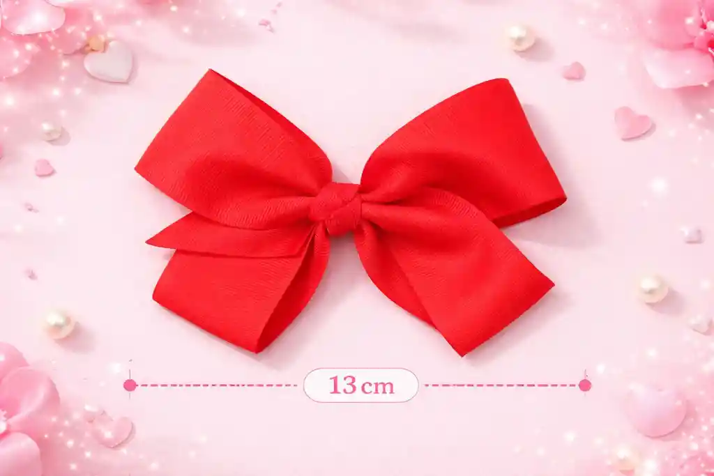 Moño rojo tela con pinza rojo x1 und