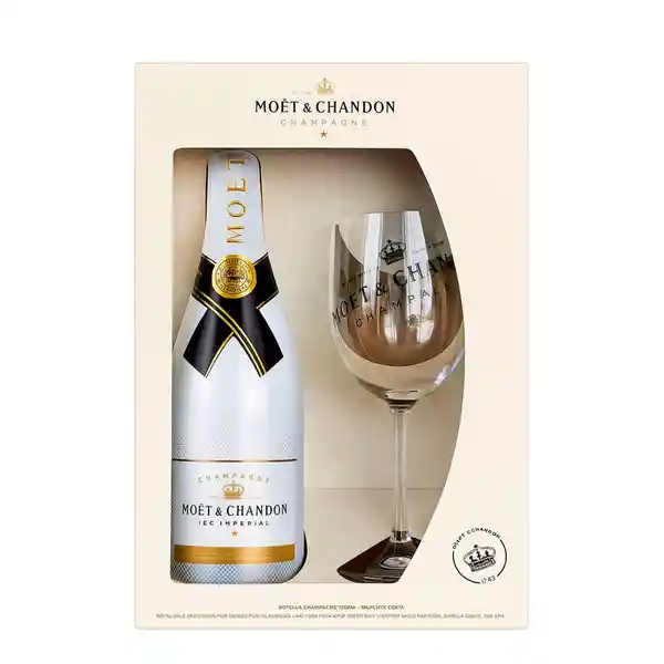 Contiene 2 Unidades. Mot & Chandon Champaña Ice Impérial 750 mL + Copa 1 Und. Mete & Chandon Ice Impérial Con ... Ver más