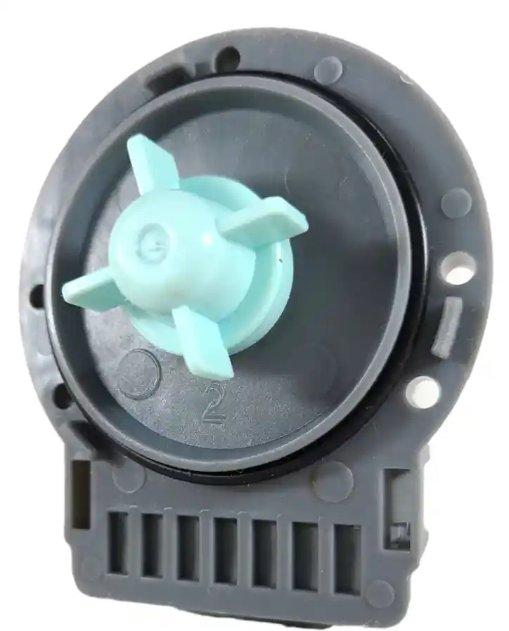 Este motor de drenaje es la pieza clave para vaciar tu lavadora. Gracias a su sistema de aspas internas, expulsa el agua de la tina de forma rápida y eficiente cada vez que termina un lavado o cuando tú lo programes.