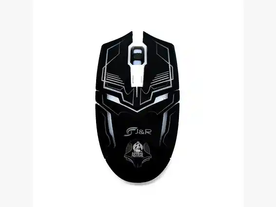 dispositivo ergonómico de 6 botones con iluminación LED multicolor, diseñado para alto rendimiento inalámbrico (2.4GHz) hasta 15 metros. Cuenta con batería recargable, sensor óptico ajustable (hasta 1600 DPI) y scroll dentado