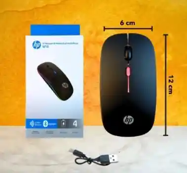 Elegancia, precisión y comodidad en un solo dispositivo. El HP W10 es un mouse inalámbrico moderno con diseño ultradelgado y luces RGB, ideal para trabajo, oficina o gaming ligero. Características principales: • Modelo: HP W10. • Dimensiones: 12 cm x 6 cm. • Conectividad: Receptor USB 2.4 GHz. • Batería recargable: Con cable USB incluido. • Diseño ergonómico: ligero, silencioso y cómodo para uso prolongado. • Luces LED RGB: Efecto multicolor que resalta tu espacio de trabajo. • Compatibilidad: Windows, macOS, Android y más.