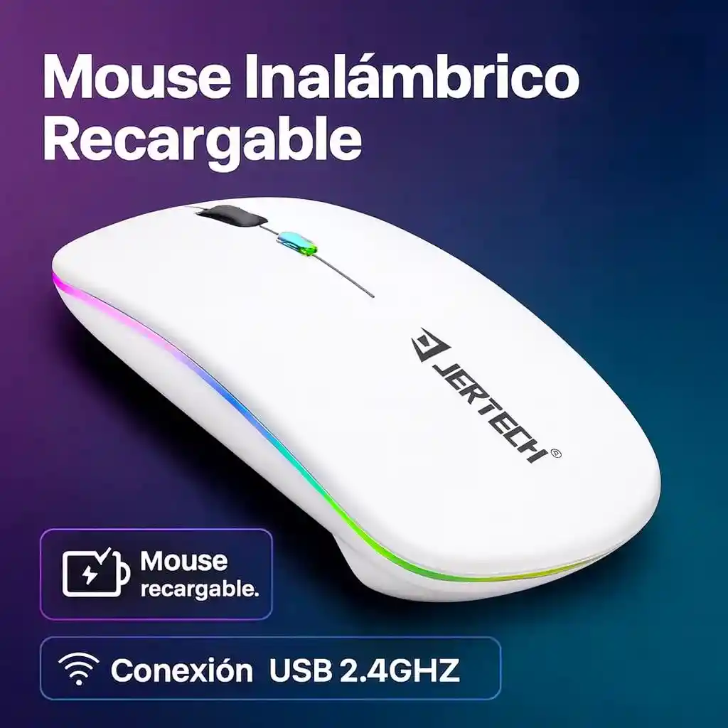 🖱️ Mouse Inalámbrico Recargable Jertech Krait JR3 El Jertech Krait JR3 es un mouse inalámbrico moderno, ligero y recargable, diseñado para brindar comodidad en la oficina, el estudio o incluso en sesiones de juego casual. Su diseño slim y silencioso lo convierten en una opción práctica y elegante para cualquier usuario. Características principales ⚡ Conexión Dual: Funciona tanto por Bluetooth como por 2.4 GHz inalámbrico. 🔋 Recargable por USB Tipo-C, con batería integrada de 500mAh. 🌈 Iluminación LED de 7 colores respirables, que le da un toque moderno y atractivo. 🎯 Resolución ajustable en 3 niveles: 800 / 1200 / 1600 DPI, ideal para precisión en diferentes tareas. 🔇 Botones silenciosos, perfectos para trabajar o estudiar sin distracciones. 🖱️ 4 botones funcionales, fáciles de usar. 📶 Alcance inalámbrico de hasta 10 metros. 💪 Durabilidad garantizada: botones con vida útil de hasta 4 millones de clics. 💻 Compatibilidad universal: Windows XP/7/8/10/Vista y Mac OS. Especificaciones técnicas • Modelo: JR3 • Dimensiones: 113 × 58 × 26 mm • Peso: 62.4 g • Voltaje: DC 1.5V ± 5% • Capacidad de batería: 500 mAh Usos recomendados 💼 Trabajo y oficina: cómodo, silencioso y preciso. 🎮 Gaming ligero: con sensibilidad ajustable para un mejor control. 📚 Estudio y portabilidad: tamaño slim y peso ligero para llevarlo a cualquier parte. 🏠 Uso en el hogar: práctico y confiable para el día a día.