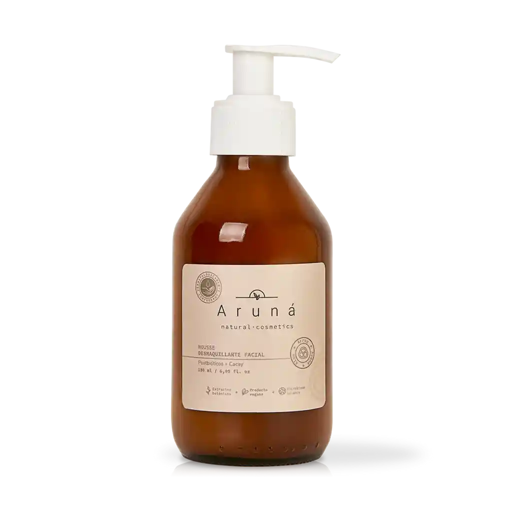 Elimina el maquillaje y las impurezas sin alterar el equilibrio natural de tu piel con el Mousse Desmaquillante de Aruná. Este limpiador facial en espuma es el primer paso ideal para una rutina de limpieza profunda, respetando y fortaleciendo el microbioma cutáneo gracias a su innovadora fórmula con postbióticos. 💦 Limpia, desmaquilla e hidrata al mismo tiempo, dejando la piel fresca, suave y protegida. Perfecto para todo tipo de piel, incluso las más sensibles o con tendencia al acné. Limpieza profunda sin resecar – Su textura mousse remueve impurezas y maquillaje sin irritar la piel. Refuerza la barrera cutánea – Los postbióticos nutren y equilibran el microbioma de la piel, promoviendo una tez saludable. Hidratación intensa y luminosidad – Gracias a su combinación de aceite de cacay, extracto de arroz, aloe vera y avena, aporta hidratación y ayuda a mejorar la elasticidad de la piel. Fórmula dermatológicamente probada – Apta para todo tipo de piel, incluso piel sensible o con tendencia acneica. Libre de ingredientes comedogénicos – No obstruye los poros, permitiendo que la piel respire y se mantenga equilibrada. Ingredientes Clave: ✨ Postbióticos: Refuerzan la microbiota natural de la piel, ayudando a mantener su equilibrio y defensa contra agresores externos. ✨ Aceite de Cacay: Rico en retinol natural y ácidos grasos esenciales, aporta propiedades regeneradoras y antiedad. ✨ Extracto de Arroz: Conocido por su acción iluminadora y suavizante, mejora el tono y la textura de la piel. ✨ Aloe Vera: Hidratante y calmante, alivia irritaciones y enrojecimientos. ✨ Avena: Nutre y refuerza la barrera cutánea, proporcionando un efecto calmante ideal para pieles sensibles. Ideal Para: Personas que buscan una limpieza efectiva sin irritar la piel. Aquellos con piel seca, sensible o con tendencia acneica que necesitan un limpiador suave pero eficiente. Amantes del skincare natural que priorizan fórmulas equilibradas y respetuosas con el medio ambiente. ✔️ Quienes disfrutan de la doble limpieza para un cuidado facial más profundo.