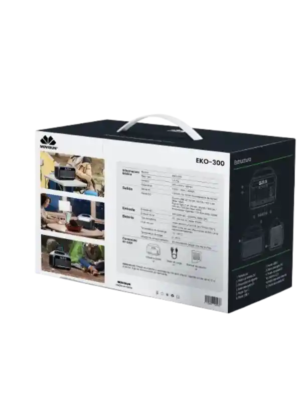 La Movisun Eko-300 es una estación de energía portátil diseñada para quienes buscan una solución eficiente y versátil para sus necesidades energéticas. Con una potencia máxima de 300 W y una autonomía de batería de hasta 5 horas, es ideal para actividades al aire libre, emergencias o como respaldo en el hogar. Este modelo monofásico ofrece un voltaje de corriente alterna de 110V, permitiendo alimentar dispositivos electrónicos y electrodomésticos de manera confiable. Su tecnología de batería de litio hierro fosfato (LFP) garantiza una larga vida útil y un rendimiento seguro, haciendo de esta estación una opción sostenible y eficiente. La Movisun Eko-300 se puede cargar de diversas maneras: a través de la red eléctrica, mediante energía solar o utilizando su batería interna. Esto la convierte en una herramienta versátil para quienes desean aprovechar fuentes de energía renovables y reducir su huella de carbono. Con un consumo por hora de 300 L, esta estación es perfecta para acampar, realizar actividades al aire libre o incluso para uso doméstico en caso de cortes de energía. Su diseño portátil y fácil de usar la convierte en un aliado indispensable para cualquier situación que requiera energía confiable y accesible.