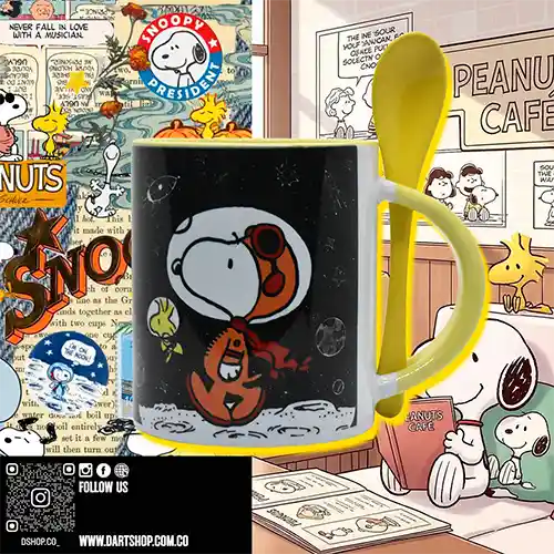 Mug personalizado con accesorio cuchara, sublimado con diseño personaje Snoopy