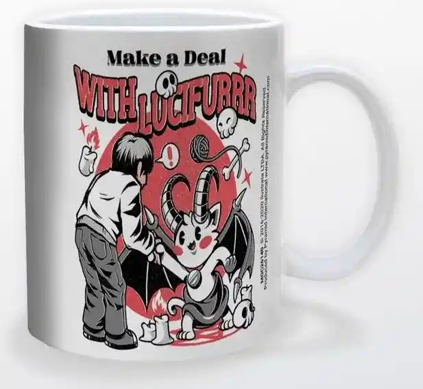 Perfecto para cualquier fanático de los gatos. Taza de cerámica de 11 oz Apto para lavavajillas y microondas. Descripción del producto Haz un trato con Lucifurrr mientras tomas tu bebida favorita con la taza de gato Lucifurrr. Esta taza de cerámica de 11 oz es apta para lavavajillas y microondas y cuenta con un impresionante gráfico envolvente de Lucifurrr.