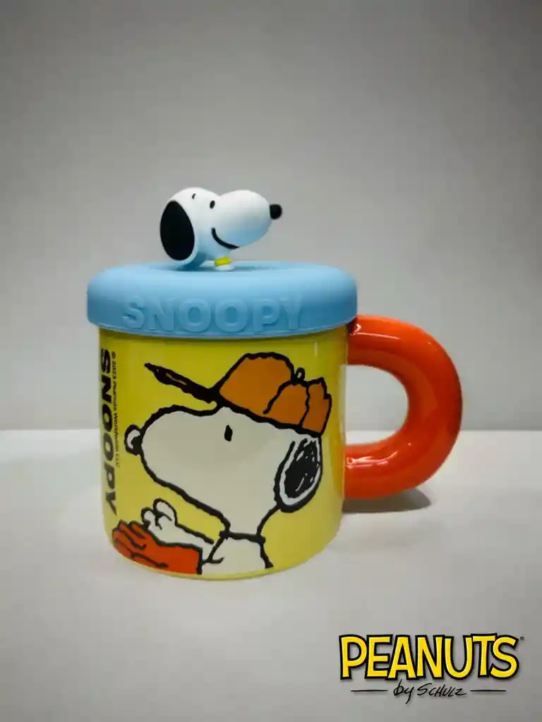 Mug O Taza Snoopy Azul Con Tapa Silicona