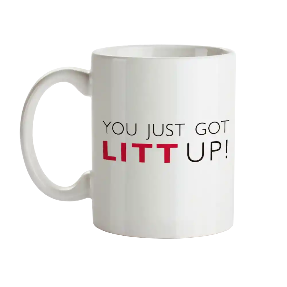 Mug You Just Got Litt Up Suits Para fans de Suits. Un mug de You Just Got Litt Up es un regalo perfecto para verdaderos fans. Todo lo que necesitas para alimentar tu lado geek! - Mug en porcelana, impresión de alta calidad - Color: Blanco - Medidas: 9.5 cms alto X 8 cms de diametro