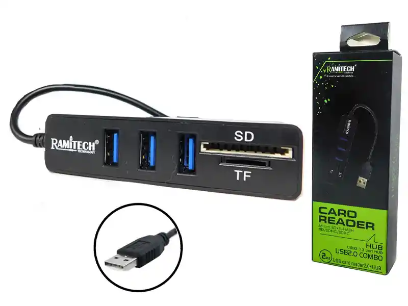 3 puertos USB Hub Multi + lector de tarjetas SD / Micro SD expande un puerto USB de 3 combinar fácilmente con ranura para tarjetas SD y micro SD (TF), lo que hace que la lectura de diferentes tipos muy convenientes de tarjetas de memoria. Las velocidades de transmisión de hasta 480 Mbps. Plug and play. El pequeño tamaño y diseño simple hace que sea conveniente para llevar a cualquier lugar que desee