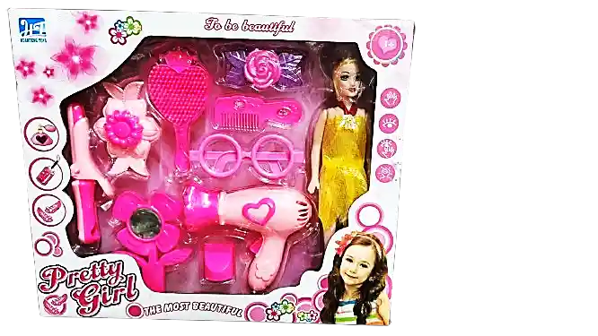 muñeca con accesorios - 8 piezas.