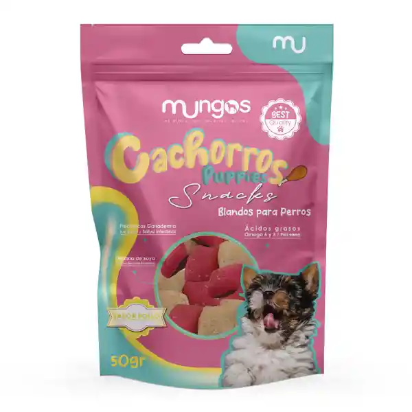 Galletas blandas con sabor a pollo que llenarán de sabor el paladar del nuevo integrante de la familia. Son funcionales y formuladas especialmente para perros de destetos (recomendado para cachorros, destetos y perros de razas pequeñas). Enriquecidas con probióticos, prebióticos, lecitina de soya, omegas 6 y 3.