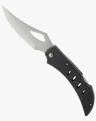 Compacta, ligera y resistente. Navaja de bolsillo plegable portátil con hoja de acero inoxidable, ideal como herramienta de corte para viajes, camping y actividades al aire libre. Tipo de filo de la hoja: Liso El mango está fabricado con plástico. La hoja está fabricada en acero inoxidable. Con hoja plegable. El tipo de apertura de la hoja es manual. El largo de la hoja es de 8.5cm. El espesor de la hoja es de 2mm.
