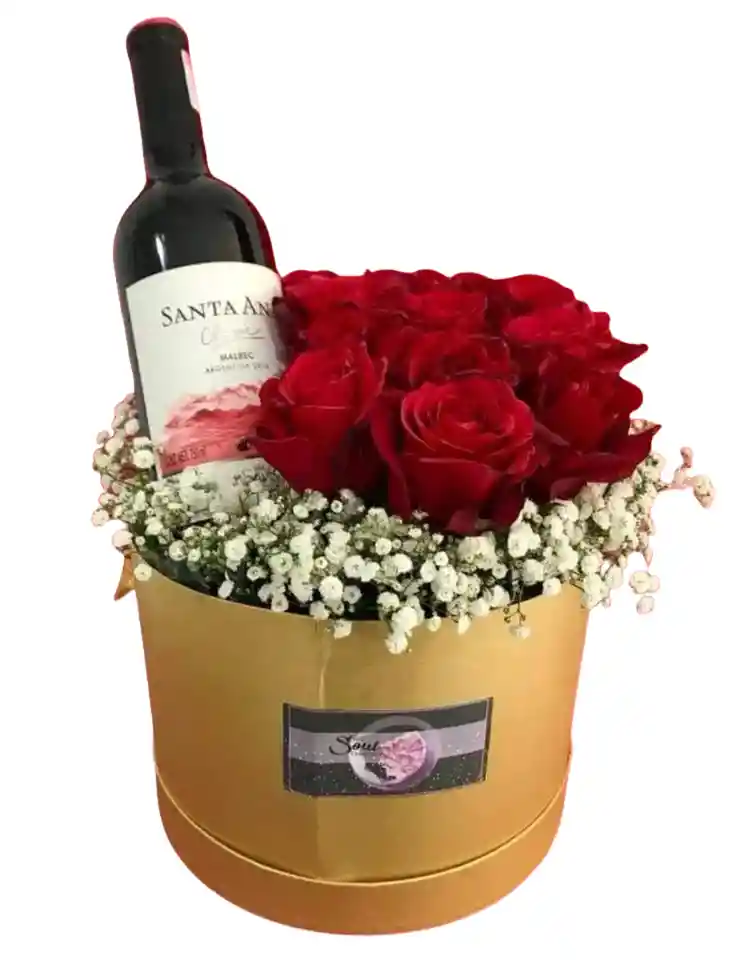Caja de 10 rosas con vino y gypsophila Nota: La flor puede ser sustituida dependiendo la disponibilidad de color y del producto “Mensaje Personalizado” máximo de 30 caracteres (Dejar el mensaje en el chat, los comentarios no se previsualizan para la tienda por lo que si se dejan allí no podrá ser incluido).