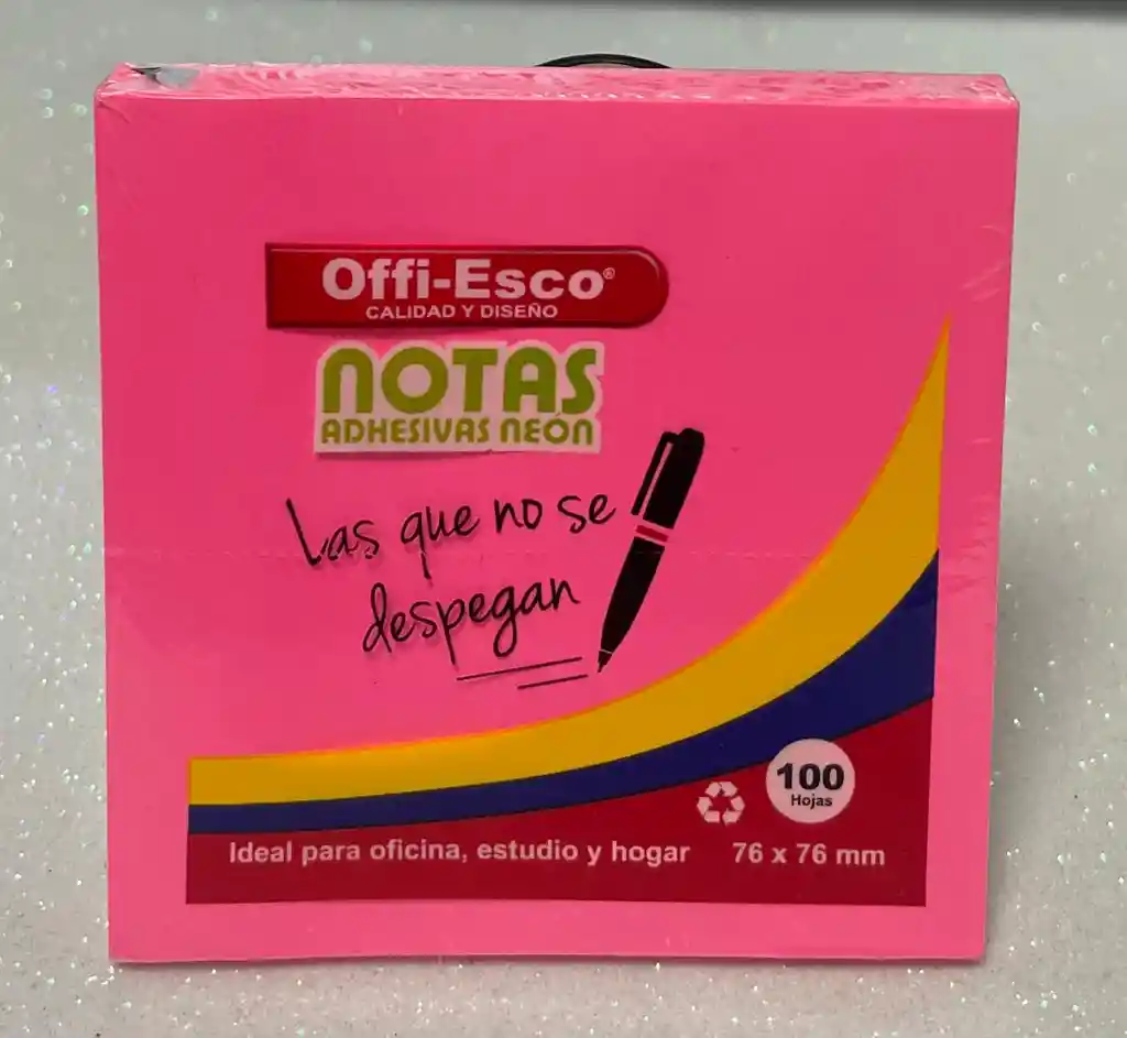 ¡Las notas que no se despegan! 📝✨ En IMPREKOLOR SAS te traemos las notas adhesivas Offi-Esco en colores neón vibrantes. Son perfectas para dejar recordatorios, organizar tus estudios o complementar tus cuadernos personalizados sin miedo a que se caigan. ✨Contenido: 100 hojas de alta adherencia. ✨Tamaño: 76 x 76mm (Cuadradas estándar). ✨Colores Neón: Amarillo, Rosado, Verde y Naranja de alta visibilidad. ✨Uso Versátil: Ideal para oficina, estudio y hogar. ⚡ ¡ORDENA YA!: Lleva el pack de 4 colores surtidos para superar el mínimo de compra y recibir tu pedido hoy mismo. 📲 315 388 0960
