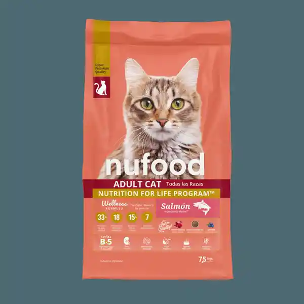 Nufood Gato Adulto Salmón es un Alimento Super Premium Diseñado Para Gatos Adultos de Todas Las Razas. Su Rece...Ver más