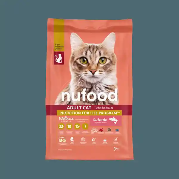 Nufood Gato Adulto Salmón es un Alimento Super Premium Diseñado Para Gatos Adultos de Todas Las Razas. Su Rece... Ver más