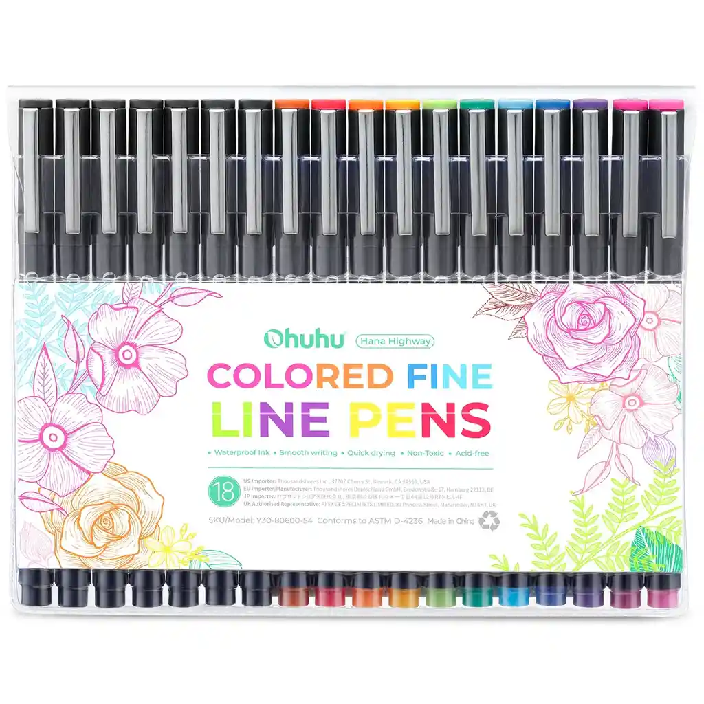 Micropuntas finas y precisas: 11 colores surtidos y 7 en negro. Total 18 unidades con punta resistente que mantiene su precisión. Ideales para detalles en ilustración, dibujo técnico, cómics y lettering. Excelente relación de colores para trabajos variados.