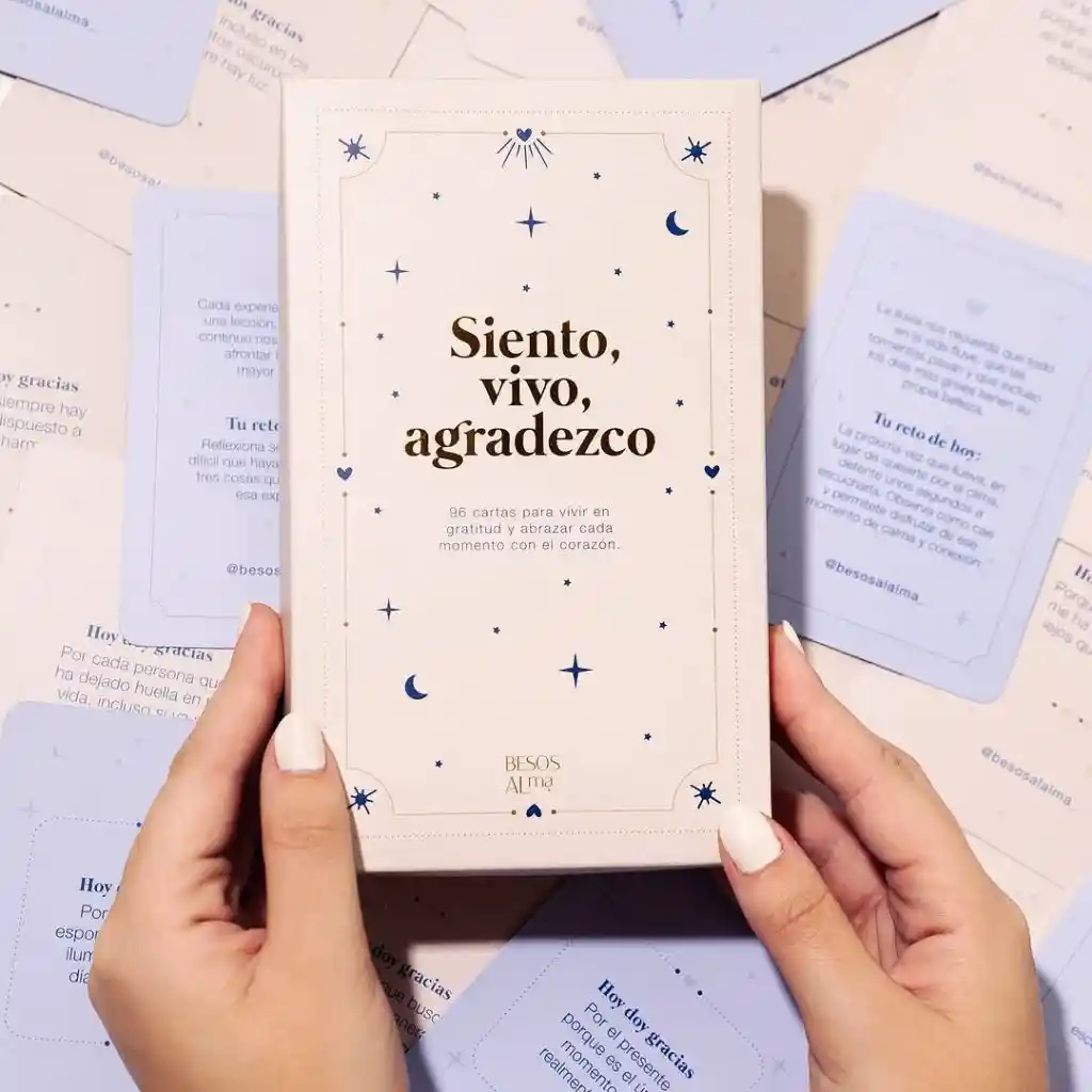 Oráculo de 96 cartas diseñado para ayudarte a vivir con mayor presencia, gratitud y conexión con lo simple. Ideal para quienes buscan reflexión diaria, crecimiento personal y momentos de pausa consciente. Cada carta contiene un mensaje inspirador y un pequeño reto que invita a cultivar la gratitud en lo cotidiano y abrazar la belleza de lo imperfecto. Perfecto como regalo espiritual, detalle consciente o herramienta de bienestar personal. ✔ Fomenta gratitud y presencia diaria ✔ Ideal para reflexión y crecimiento personal ✔ Mensajes y retos prácticos ✔ Promueve conexión con lo simple ✔ Regalo significativo y especial 📦 Incluye: • 96 cartas con mensajes y acciones diarias • Base de madera para exhibir tu carta del día Un recordatorio diario de que lo valioso no siempre es grandioso 🌿✨