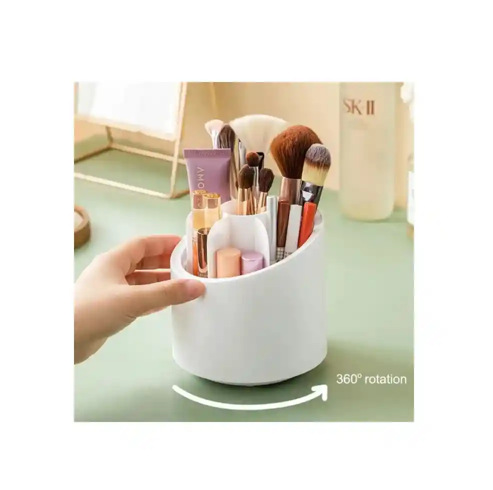 Diseño Giratorio: Cuenta con una base que permite una rotación suave de 360°, facilitando el acceso a todos los pinceles desde cualquier ángulo. Tapa Transparente: Incluye una cubierta acrílica o de plástico transparente que protege las brochas del polvo y la suciedad, a la vez que permite ver el contenido fácilmente. Material de Calidad: Está fabricado con plástico (a menudo ABS) de alta calidad, que es duradero y resistente para el uso diario. Compartimentos: El interior tiene múltiples compartimentos o ranuras (comúnmente tres) de diferentes alturas para clasificar eficientemente brochas de distintos tamaños y otras herramientas cosméticas. Multiusos: Además de brochas de maquillaje, puede usarse para organizar lápices labiales, delineadores, o incluso artículos de baño como cepillos de dientes y pasta dental. Fácil Limpieza: El diseño simple y los materiales de plástico facilitan la limpieza del organizador. Estabilidad: La base cuenta con un diseño antideslizante para asegurar que permanezca estable en el tocador o lavabo.