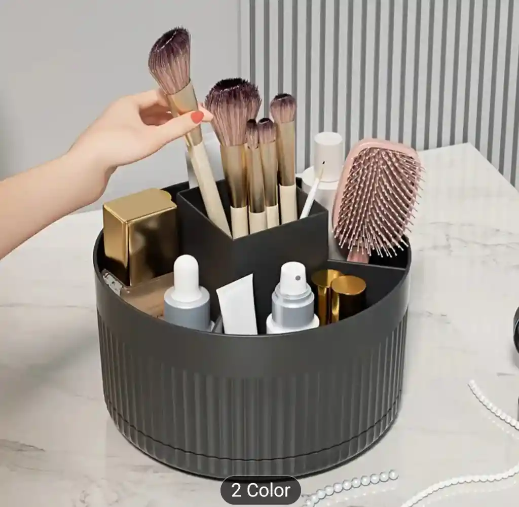 Organizador de maquillaje giratorio negro elegante, 1 unidad - Caja de almacenamiento cosmético multifuncional con 5 compartimentos para brochas, cuidado de la piel y productos de belleza, diseño en plástico sin olor, ideal para decoración de dormitorio y baño
