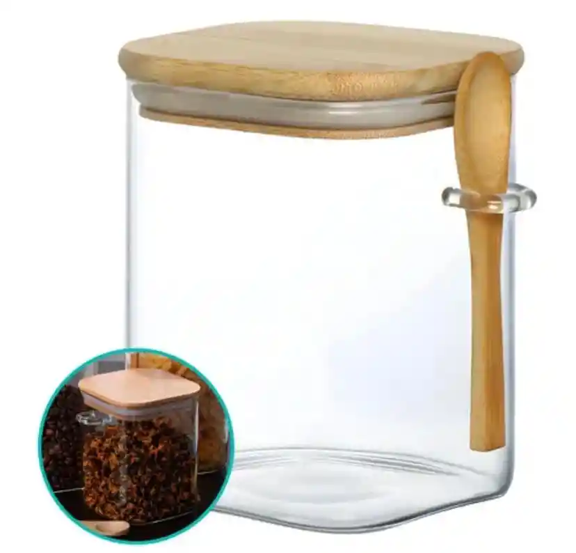 El detalle perfecto para una cocina impecable! 👩🍳 Este Mini Frasco de Vidrio es la combinación ideal entre funcionalidad y estética. Su tamaño compacto lo hace perfecto para tener tus especias o ingredientes favoritos siempre frescos y a la mano, ya sea en la estantería o directamente en la mesa. * 💎 Cristal Borosilicato Premium: Transparencia total que permite identificar el contenido al instante. Es un material higiénico que no absorbe olores ni sabores, manteniendo la pureza de tus especias. * 🌬️ Sellado Hermético Natural: La tapa de madera de bambú cuenta con un empaque de silicona que garantiza un cierre hermético, protegiendo tus alimentos de la humedad y el polvo. * 🥄 Cuchara de Bambú Incluida: Cada frasco viene con su propia cuchara y un soporte integrado en el vidrio. ¡Sirve la cantidad exacta de forma limpia y elegante! * 🏠 Ideal para Todo Tipo de Alimentos: * Especias: Pimienta, sal marina, orégano o cúrcuma. * Mesa: Azúcar para el café, endulzantes o mermeladas. * Snacks: Semillas de chía, frutos secos picados o polvos nutricionales. 📏 Medidas Aproximadas: * Alto: ~10 cm - 12 cm 📐 * Ancho: ~8 cm 📐 * Capacidad: Ideal para especias de uso diario o condimentos finos. ¡Transforma tu despensa con este toque minimalista! 🛒 Agrégalo a tu carrito en Rappi y empieza a organizar con estilo. 🚀