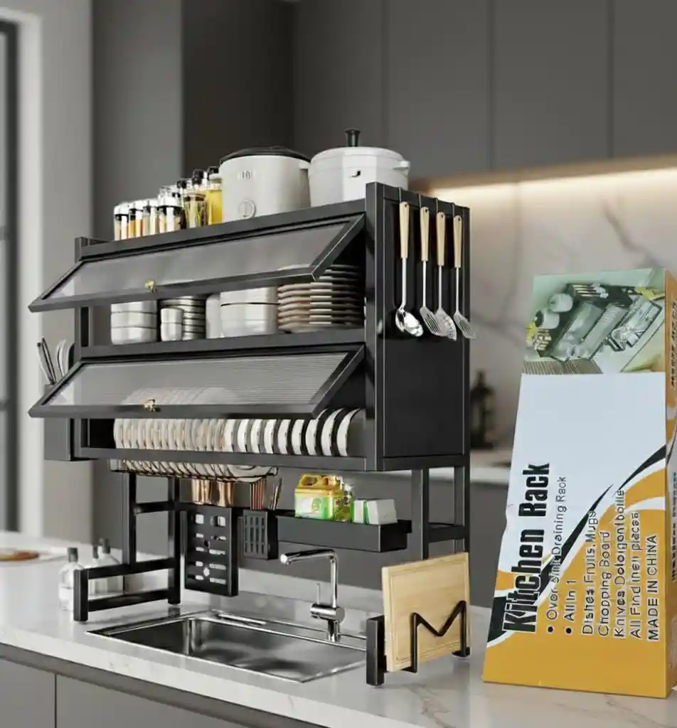 Espectacular organizador de loza doble nivel con tapa