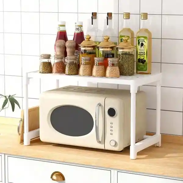 CARACTERISTICAS - Estante de un nivel fabricado en materiales resistentes y duraderos. - Superficie superior apta para colocar frascos, utensilios o adornos. - Diseñado especialmente para microondas de tamaño estándar. - Estructura estable que garantiza seguridad durante su uso diario. - Fácil de armar sin necesidad de herramientas complicadas. - Ideal para optimizar espacios en cocinas pequeñas o medianas. - Acabados modernos que combinan con diferentes estilos de hogar. - Soporta peso suficiente para microondas y accesorios adicionales. - Base firme que evita movimientos o deslizamientos accidentales. - Ligero y portátil, se puede trasladar fácilmente a otro lugar. QUE INCLUYE LA COMPRA X1 Estante Cocina