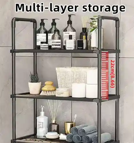Tipo de estructura: Soporte tipo "H" que se apoya en el suelo. Almacenamiento: Diseño más ancho para aumentar el área de almacenamiento. Capacidad multicapa para clasificación y almacenamiento eficiente. Reposabrazos elevados para evitar caídas de los objetos almacenados. Estabilidad: Material grueso y resistente, lo que lo hace fuerte, estable y duradero. Patas antideslizantes para un buen agarre incluso en suelos húmedos. Medidas: 47 x 25 x 155 cm (ancho x profundidad x alto). Beneficio: Ayuda a organizar el baño y decir adiós al desorden, ofreciendo un almacenamiento abierto y accesible.