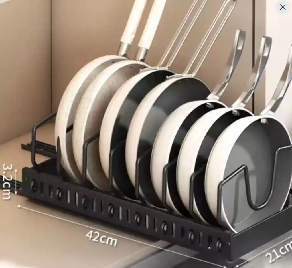 ORGANIZADOR DE OLLASOrganizador de ollas ajustable, estante de almacenamiento de utensilios de cocina de acero inoxidable.Instalación rápida: el estante para ollas viene con todo lo necesario y se puede instalar en menos de 1 minutoGran capacidad de almacenamiento: estos soportes de olla ajustables en altura y posición almacenan hasta 8 sartenes, planchas o ollas de varios tamañosConstrucción sólida: Este organizador de estante para ollas hecho de hierro resistente con proceso de pintura en aerosol terminado. Es muy firme y eleganteDiseño especial de ranura en forma de U: mientras se usa verticalmente, el diseño especial de ranura en forma de U puede mantener las tapas de las ollas en su lugar.Dimensiones: 42x21x23 cm (3.3 cm base)