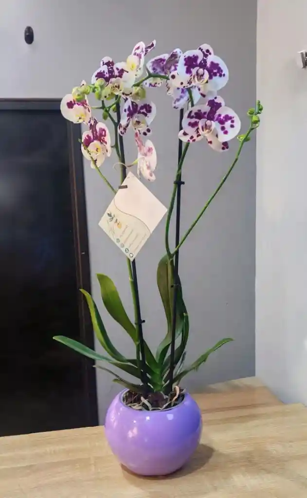 Linda Orquidea de 2 varas con full floración + mat H35 Ten en cuenta que esta producto puede presentar cambios según la temporada