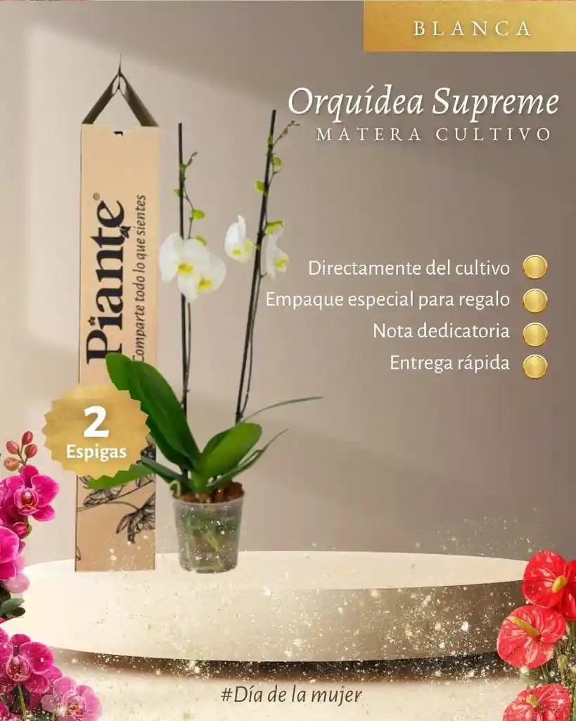 Llena tus espacios de vida, sofisticación y color con nuestra Orquídea Premium, una planta hermosa y delicada que transforma cualquier ambiente en un lugar elegante y acogedor. 💐 Sus flores destacan por su forma exótica y su presencia imponente. 🌿 Ideal para decorar salas, oficinas, habitaciones o regalar en ocasiones especiales. ✨ Cada planta es seleccionada cuidadosamente para garantizar frescura, calidad y una presentación impecable. El color de la flor puede variar según el estado de floración, lo que hace que cada orquídea sea única y especial. Podrás recibir tonalidades que van desde blancos puros, rosados suaves, fucsias vibrantes, amarillos o combinaciones encantadoras, dependiendo de la disponibilidad y el momento natural de la planta. 📸 La fotografía es imagen de referencia. El color puede variar según disponibilidad y proceso natural de floración. 🌺 Regala naturaleza, regala elegancia, regala una experiencia premium.